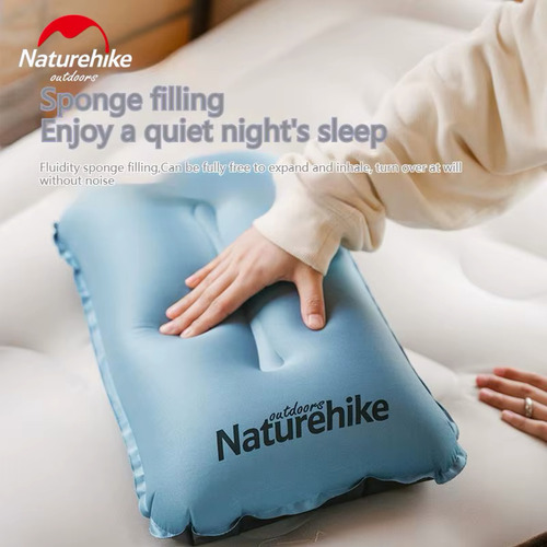 Almohada inflable suave al tacto. Por su tamaño reducido y fácil operación es ideal para viajes en micro, avión o para llevar de campamento.