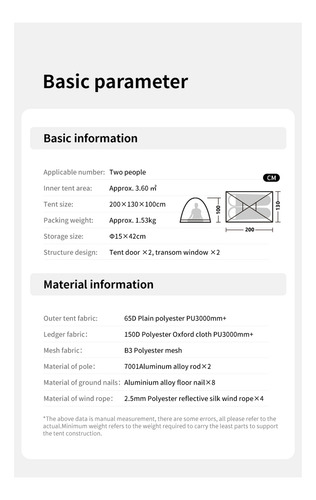 La Carpa Camping Naturehike Serie P es la elección ideal para los amantes de la aventura al aire libre. Con un diseño tipo iglú, esta carpa ofrece una capacidad máxima para dos personas, perfecta para escapadas en pareja o con un amigo. Su profundidad de 2 metros y altura de 1 metro garantizan un espacio cómodo y acogedor.