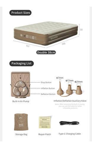 Colchon Sommier Inflable 2 Plazas Electrico Naturehike cantidad