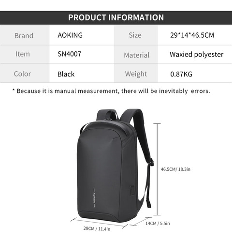 Esta mochila es reforzada y a prueba de agua, lo que la convierte en una opción confiable para cualquier aventura urbana. Su diseño sin género la hace adecuada para todos, y su estilo moderno se adapta a cualquier outfit. La Aoking SN4007 es más que una mochila; es un compañero indispensable para quienes valoran la seguridad y la funcionalidad en su día a día.