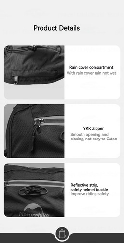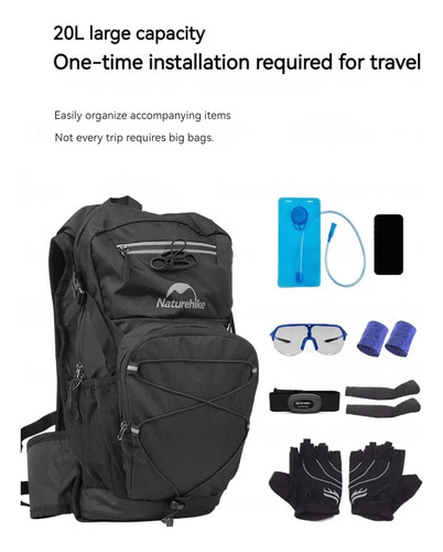 La Mochila Ciclismo Ciclista Trekking Naturehike es ideal para adultos que buscan comodidad y funcionalidad en sus actividades al aire libre. Con una capacidad de 20 L, esta mochila deportiva está fabricada en poliéster de alta calidad, lo que la hace resistente y duradera. Además, su diseño reforzado la convierte en una opción segura para llevar tus pertenencias mientras practicas deportes de aventura.