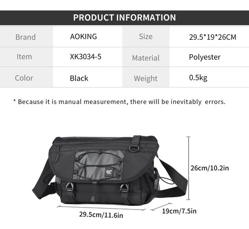 El Bolso Bandolera Morral Aoking XK3034-5 es más que un simple accesorio; es una declaración de estilo y practicidad. Perfecto para quienes valoran la comodidad sin sacrificar la estética, este bolso se adapta a tus necesidades diarias, ya sea para ir al trabajo, salir de paseo o realizar actividades al aire libre. Su diseño sin género lo convierte en una opción inclusiva, ideal para todos.
