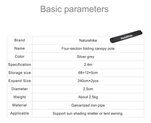 Palos Para Toldo Postes Metálicos 2.4m Naturehike