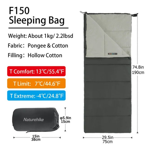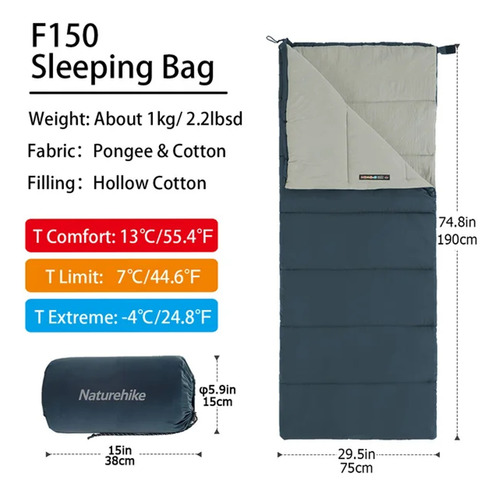 El Sobre De Dormir Naturehike F150 Bolsa es ideal para tus aventuras al aire libre. Con un diseño rectangular y materiales de alta calidad como el Pongee en el exterior y fibra de algodón en el relleno, te brindará comodidad y calidez durante la noche. Su tamaño individual y peso ligero de 1 kg lo hacen fácil de transportar y guardar en su bolsa compresora incluida.